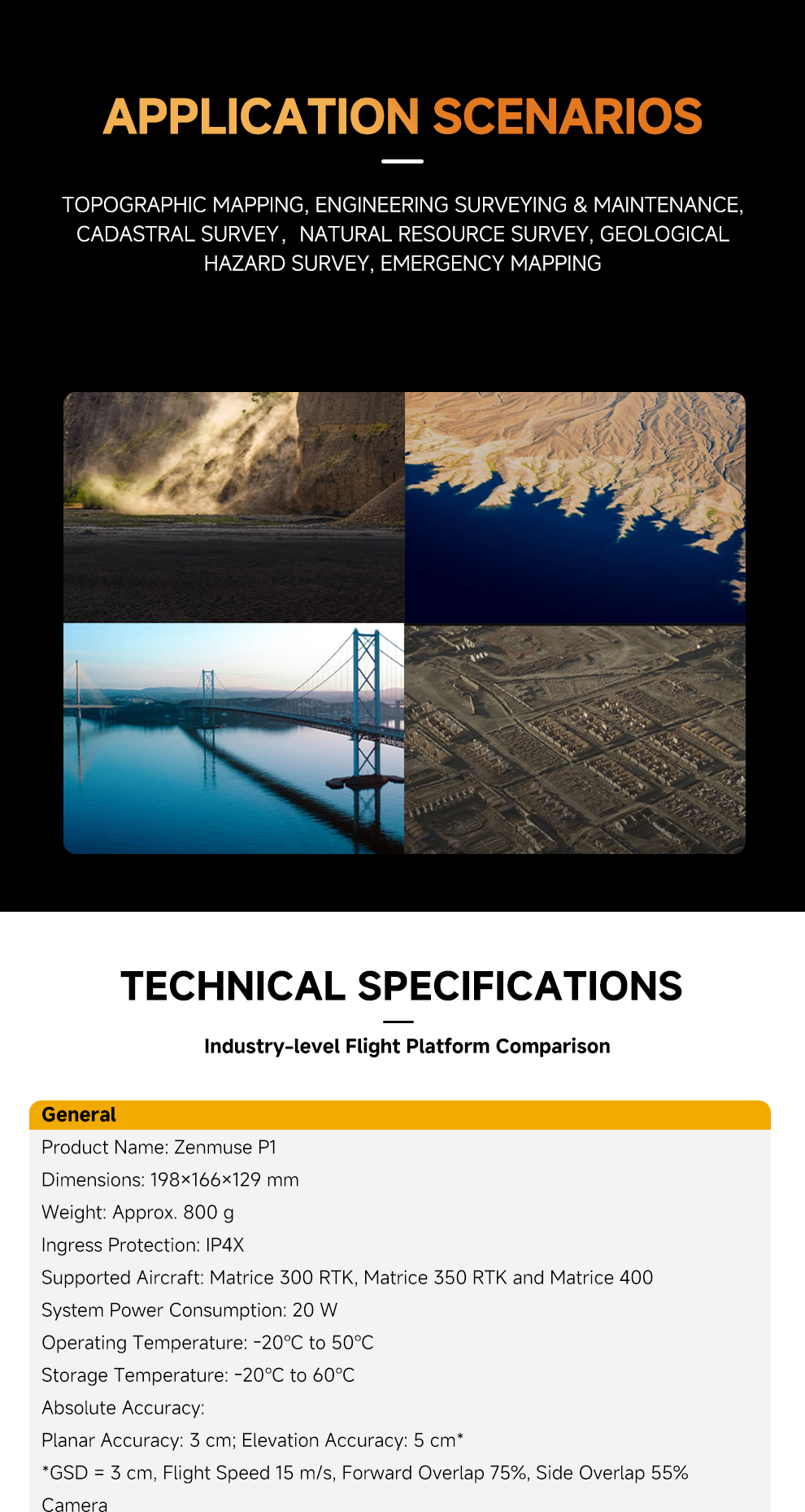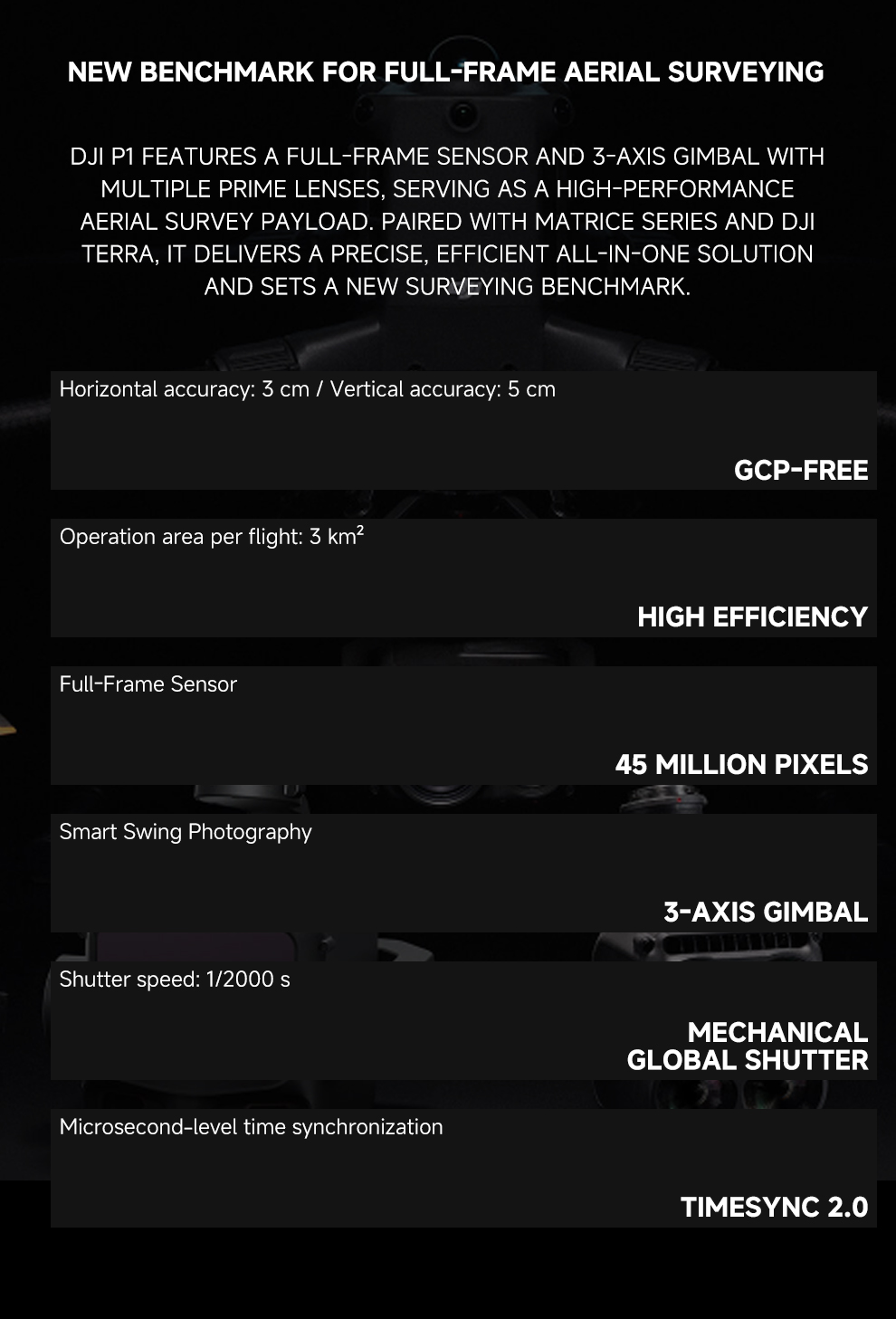 DJI Zenmuse P1 full-frame three-axis gimbal camera mount, 2D and 3D mapping, close-range surveying, high-definition aerial photography, compatible with M350RTK drone