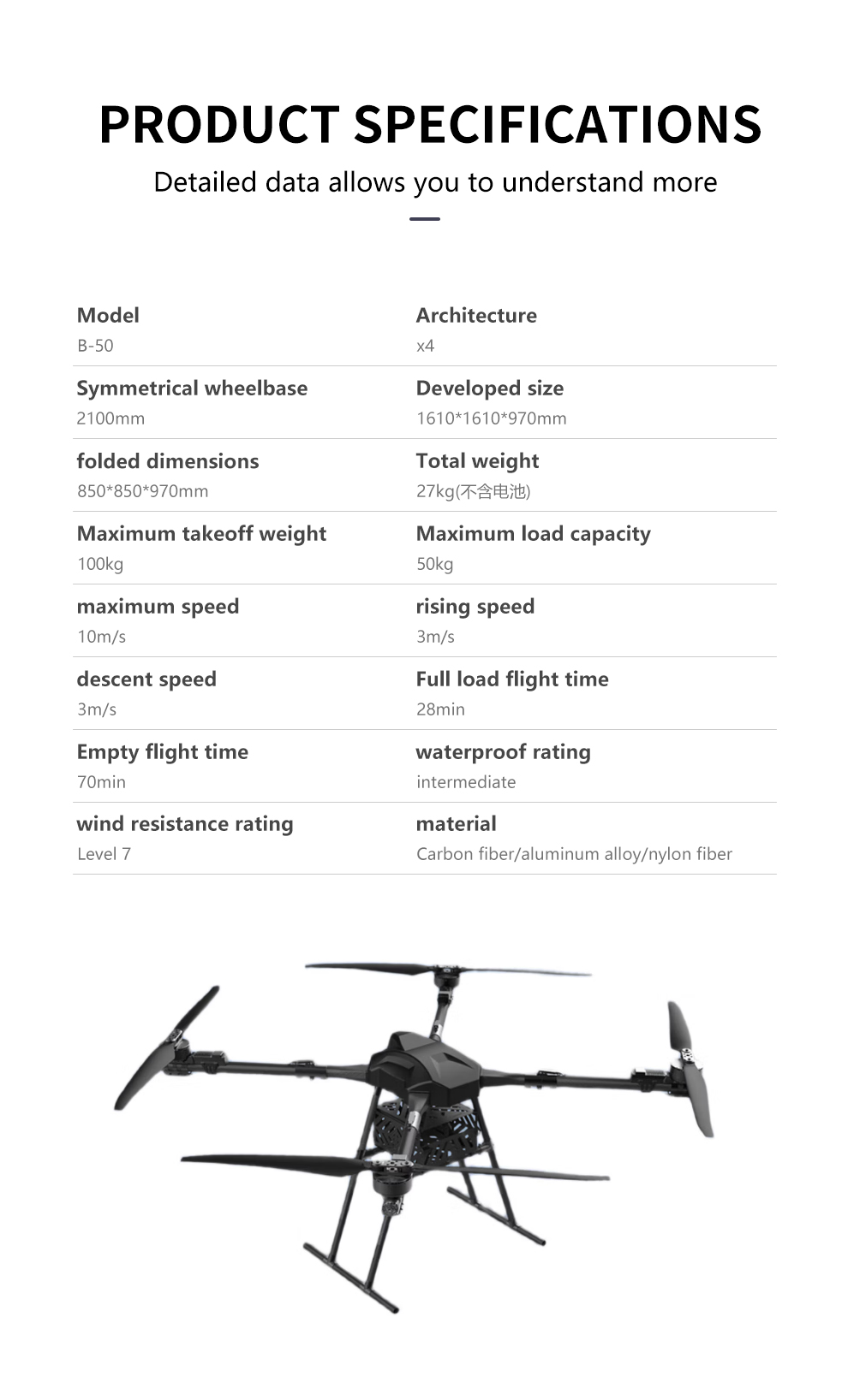 Shubona Rescue Inspection Reconnaissance Firefighting and Transportation Industrial Drone Black Warrior B-50 Payload 50kg